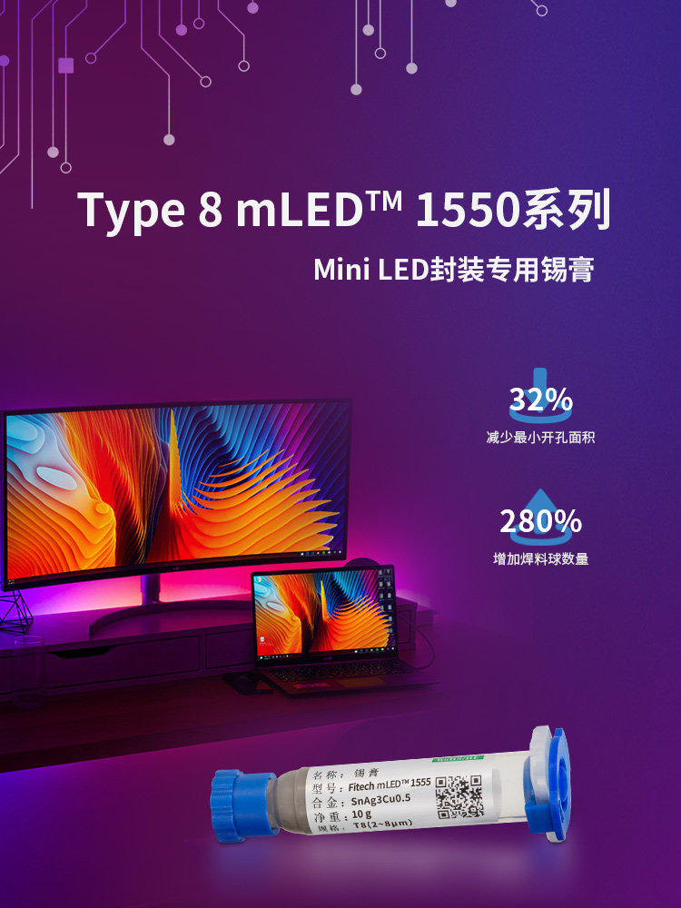 環氧樹脂錫膏,焊點加固,絕緣性加強,適用微間距,工藝簡化提升效率,包括規模商用的 6號粉、7號粉、8號粉,以及尖端應用9號和10號粉